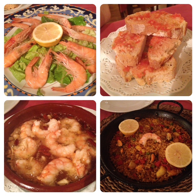 The next place we really loved in Barcelona was a restaurant called Koxkera. Weird name, but amazing food. This was definitely our treat in Barcelona, it was not cheap but it was definitely worth it. I was on a mission to find a great paella, as you do in Spain. Although, I had read that many places will just heat up frozen versions, which is disgraceful considering it is their national dish! I guess that stuff happens everywhere though, as we did have couple of horrible pizzas and risottos in Italy. So, I did my research and tried to find the best places in Barcelona that make fresh seafood paella. We certainly found this at Koxkera – it was full of flavour, but the saffron was not overpowering, the calamari was so fresh and perfectly cooked – not rubbery or stringy at all, and the prawns were delicious. I can’t explain how great it was!! We had two prawn starters, one being fresh unpeeled king prawns with lemon and aioli, and together with some traditional Spanish tomato bread, I was in heaven. I know it’s a little weird, but I love peeling prawns. I find it very therapeutic! I couldn’t do them all day, but just a few. Our second prawn dish came out in a sizzling claypot full of garlic and small, extremely hot Spanish chillies. They were like little prawn poppers, and I could have eaten them all myself! I really can’t wait to get back to Barcelona and try some more of the food! We had great sample of amazing Spanish seafood and I think I may have to try and find something similar in Melbourne! Let’s hope I can 🙂