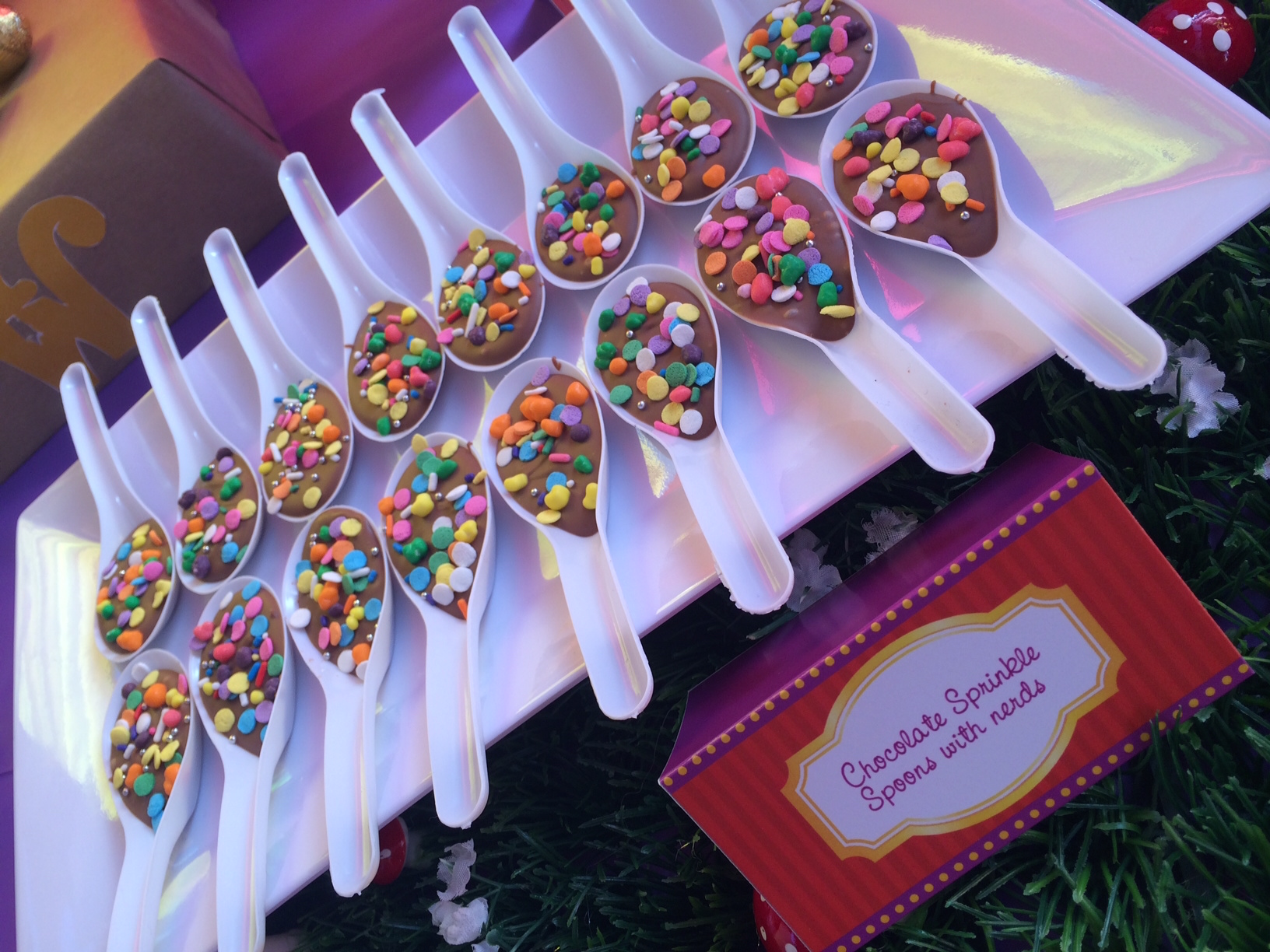 Other bits and pieces I created for the party included Redskin Macaron lollipops (you can find the recipe for these here), Chocolate covered Oreos with popping candy (these were the kids fave!), and chocolate sprinkle spoons with nerds.