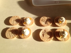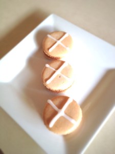 Preheat oven to 170c (160c fan forced). Spray four oven trays with cooking oil spray baround the edges, and line with baking paper and set aside. Place almond meal and icing sugar in a large bowl, and sift together 3 times. Set aside, along with the 45g egg whites. Put 50g egg whites in a separate bowl. Heat caster sugar and water in a small saucepan, over a low-medium heat, until the sugar completely dissolves (if it slightly burns my tongue, it’s done!). If you do not want to burn your tongue, Zumbo suggests investing in a candy thermometer and heating the syrup until it reaches 118 degrees C (244 degrees F). If the syrup becomes thick and powdery in appearance, you will need to start again. This is because the sugar has been heated too much, too quickly, and instead of dissolving, it has cooked.