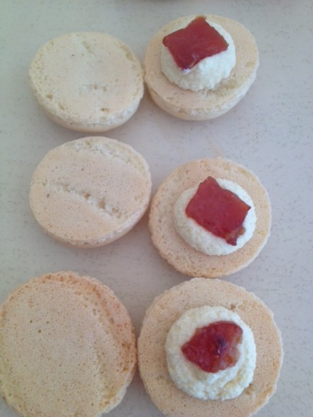 Preheat oven to 170c (160c fan forced). Spray four oven trays with cooking oil spray baround the edges, and line with baking paper and set aside. Place almond meal and icing sugar in a large bowl, and sift together 3 times. Set aside, along with the 45g egg whites. Put 50g egg whites in a separate bowl. Heat caster sugar and water in a small saucepan, over a low-medium heat, until the sugar completely dissolves (if it slightly burns my tongue, it’s done!). If you do not want to burn your tongue, Zumbo suggests investing in a candy thermometer and heating the syrup until it reaches 118 degrees C (244 degrees F). If the syrup becomes thick and powdery in appearance, you will need to start again. This is because the sugar has been heated too much, too quickly, and instead of dissolving, it has cooked.